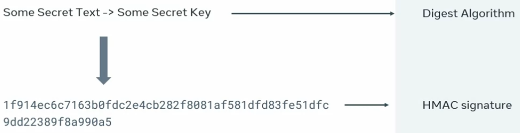 For example, some secret message, encoded by a digest algorithm with a secret key, some secret key creates this HMAC signature.