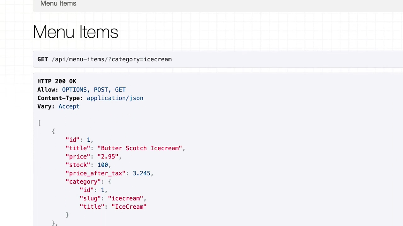 }After completing these steps you can list all menu items by visiting http://127.0.0.1:8000/api/menu-items and any single menu item by visiting http://127.0.0.1:8000/api/menu-items/1.