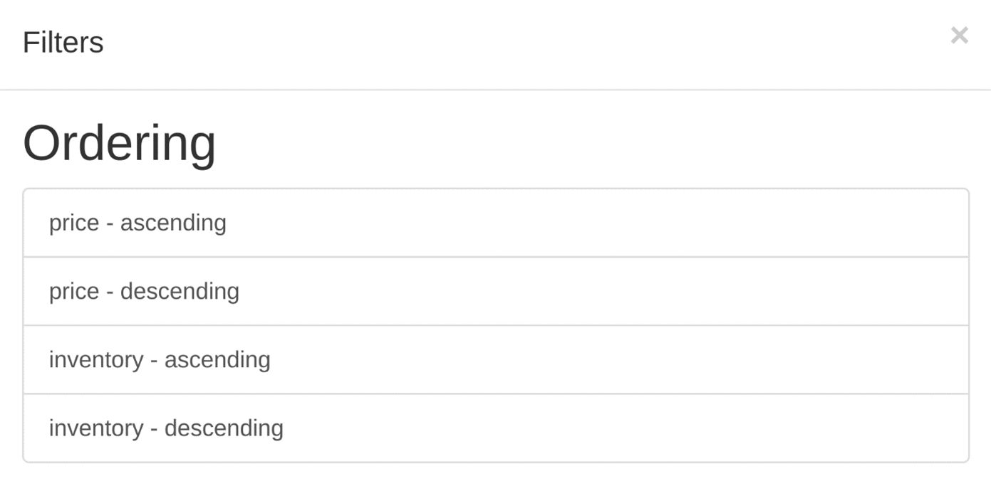 ordering_fields=['price','inventory']If you visit http://127.0.0.1:8000/api/menu-items you’d notice a new filter button on the top right-hand side like in this screenshot.