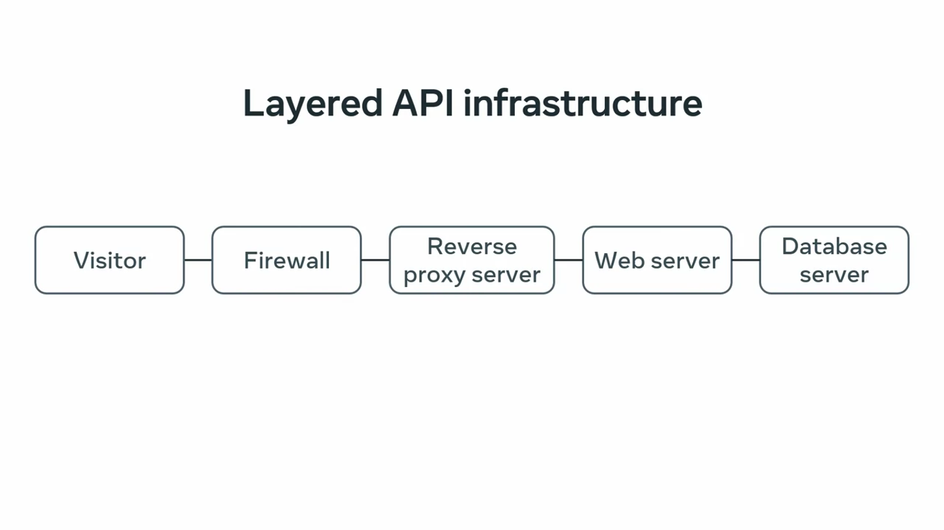 A visitor sends a request to your domain, which goes to the firewall first. From there, it goes to a reverse proxy server that sits in front of your web server. The reverse proxy server transfers the call to one of your web servers. Then the web server connects to the database servers. The database server prepares the response and sends it back to the reverse proxy, which finally sends it back to the visitor who made that request.