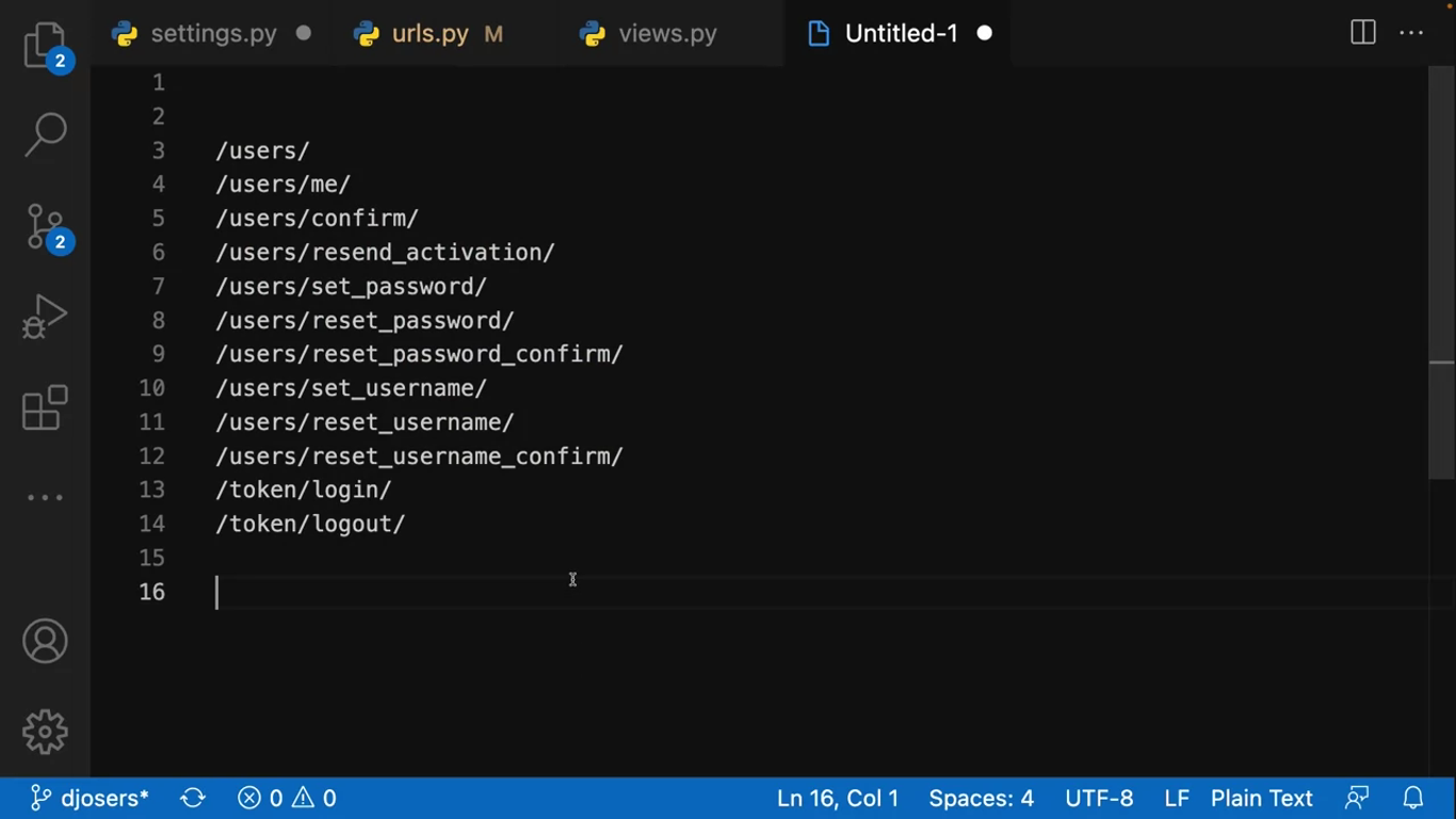 return [IsAuthenticated()]Make sure you save all the files that have been updated.