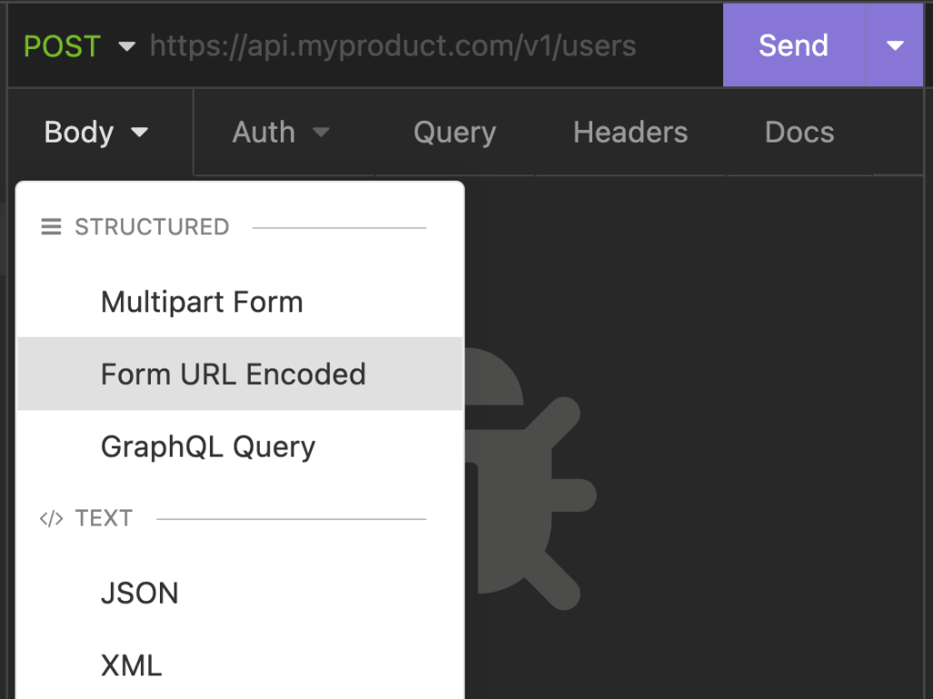 - Press the Send button to generate the POST request. It will generate JSON output like in the screenshot below.