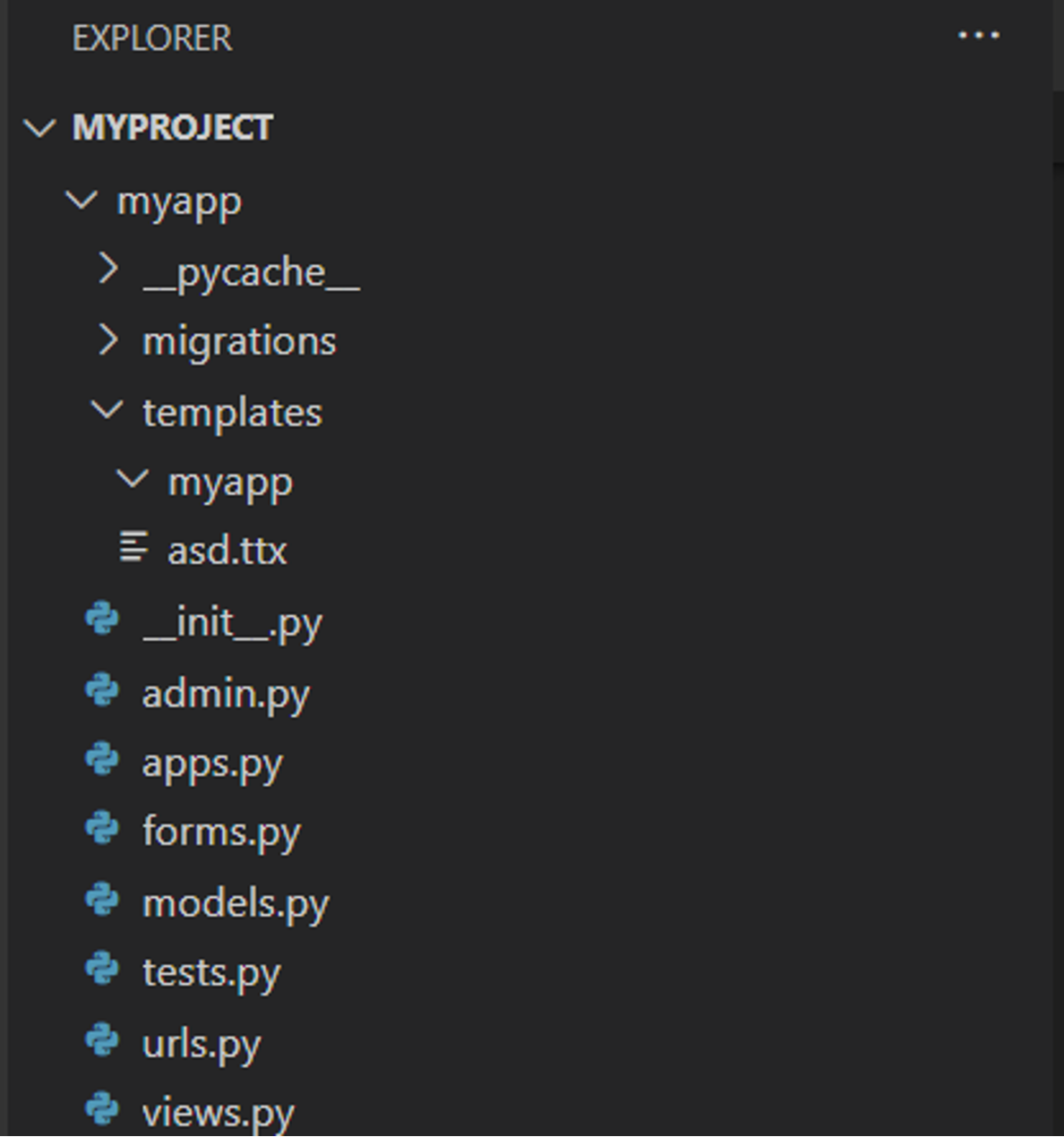 Add a Django app named as myapp. Then, register this app in the INSTALLED_APPS list of the project’s settings.py.