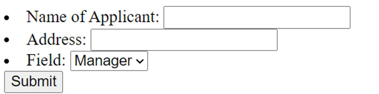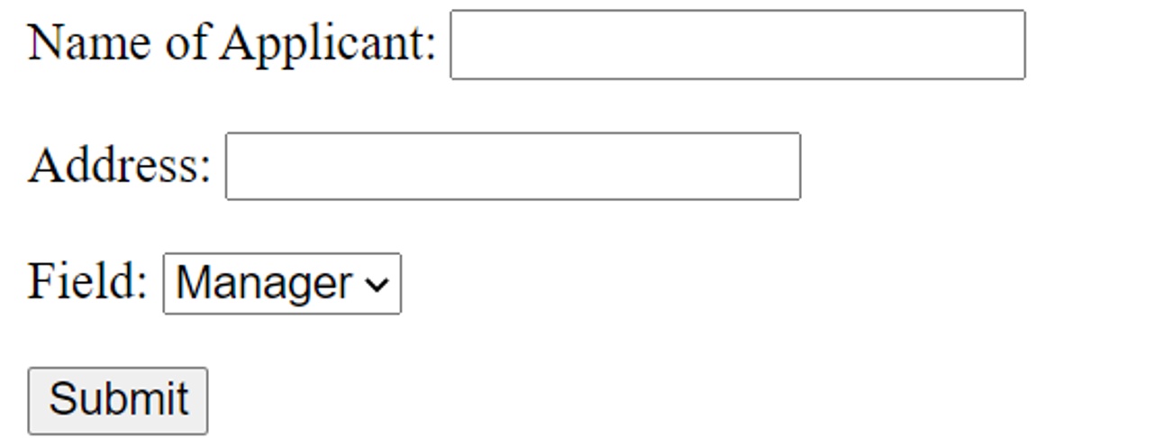 </form>While this process works well, code can become tedious and complex when dealing with large forms. For example, forums can have many different ways of gathering data with conditional flows. Also, designing forms in this way can lead to errors as each form element’s name or ID attribute needs to match what the back-end code expects.