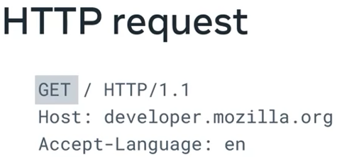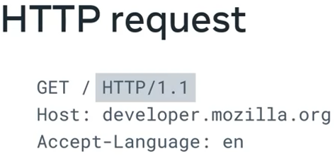 In this example, GET is the HTTP method, /home.html is the resource requested and HTTP 1.1 is the protocol used.