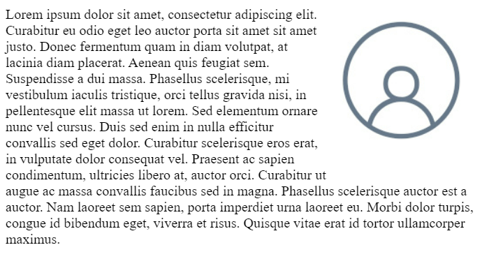 The float property sets an element’s position relative to the text content within a parent element. Text will wrap around the element.