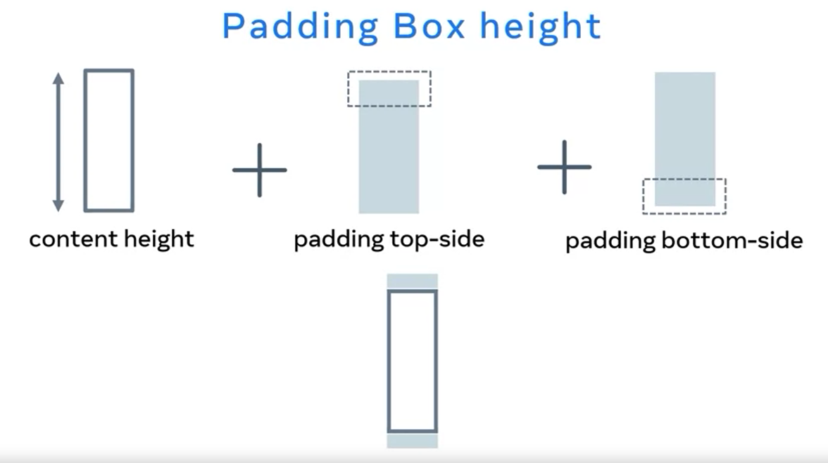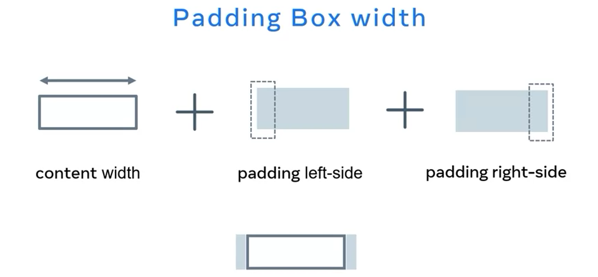 Padding: The padding extends the content size. Its size is known as the padding box width and the padding box height. The thickness of the padding is determined by the padding top, padding bottom, padding left and padding right.