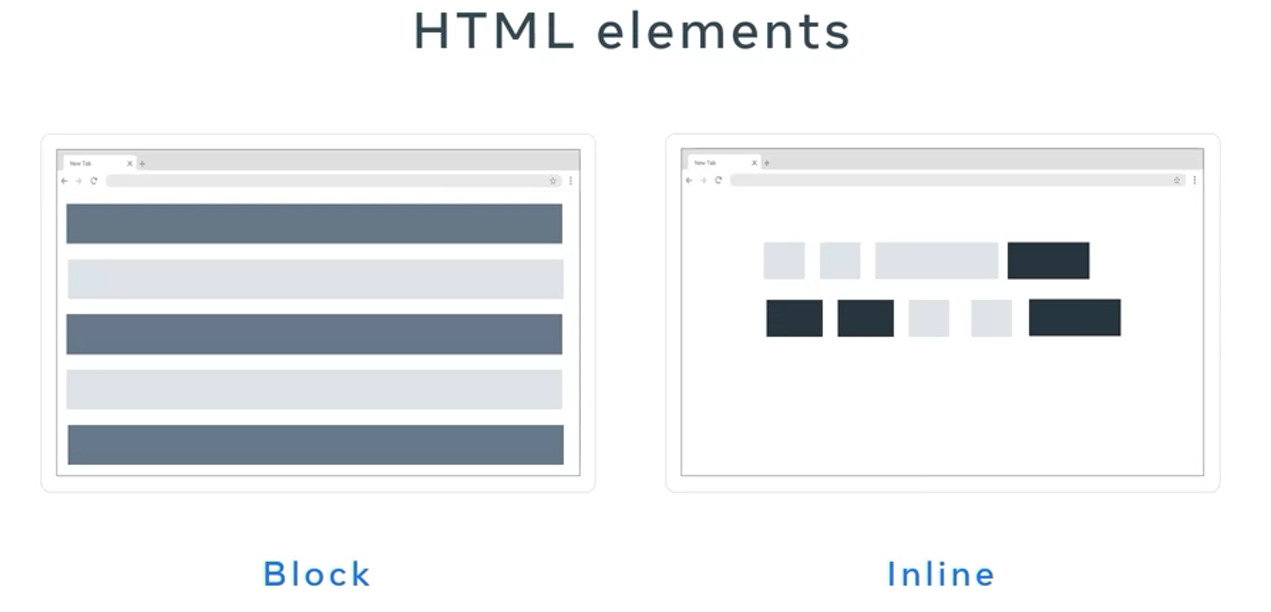 In line elements only occupy the width and height of their content. They don’t appear on a new line, hence the name in line. Therefore, multiple in line elements can form a row of elements.