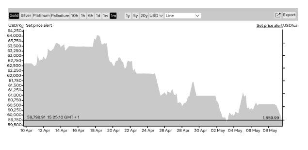 The chart below depicts a company’s gold price over the past month. There is a line that starts with the 10th of April when gold stood at $62,650 for 1kg. This line connects the dots that visualize the change in the gold price over time. The up-and-down movement of the line helps highlight positive and negative changes.Â