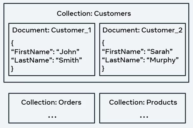 In this example, customer documents are held in a customer collection while ordering product documents are stored in the ordering product collections.