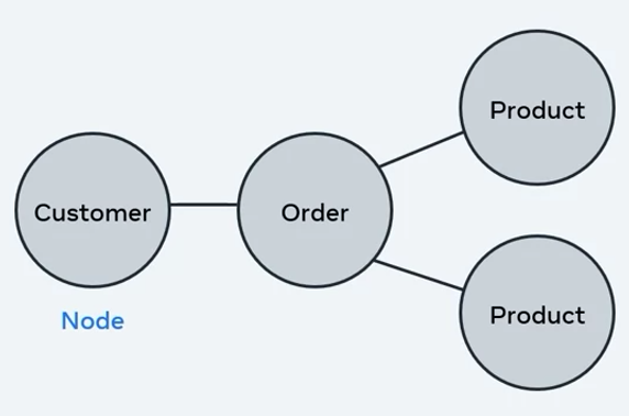 In this case, entities like customers, orders, and products are represented as nodes. The relationships between them are represented as edges.