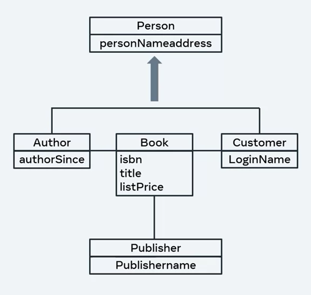 It’s possible to represent data according to OO concepts like inheritance and parent-child relationships among data. For example, an Author and Customer are both descendants of Person. Thus, a person is a generic entity that can represent both an Author and a Customer.