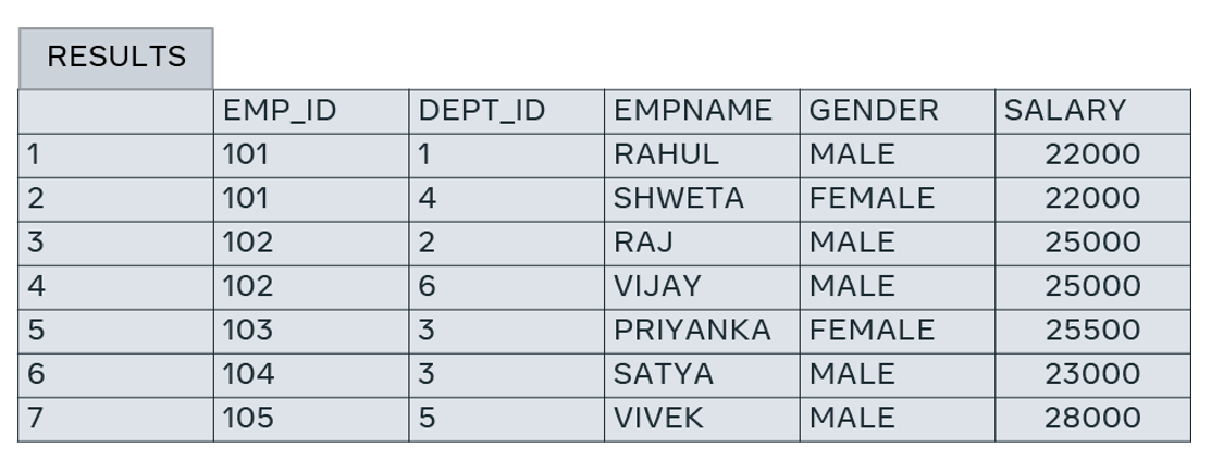 In some cases, the primary key can comprise more than one column or field. This happens when a single column cannot make a record in a table uniquely identifiable. For example, in the table below, the EMP_ID values aren’t unique, so the column is not unique by itself. Thus, this column alone cannot be used as the primary key of this table. However, the EMP_ID and DEPT_ID columns together can make a record unique. Therefore, the primary key of this table is EMP_ID and DEPT_ID. This is also known as a composite primary key.