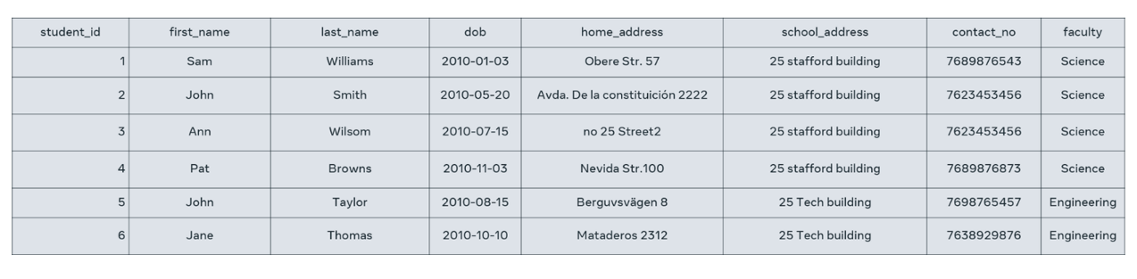 Here’s an example of a table. This is the student table that stores data about a student such as: