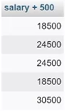 SELECT salary + 500 FROM employee