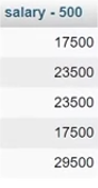 SELECT salary - 500 FROM employee