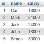 WHERE salary <> 24000; The expression here is salary <> 24000. This expression checks the inequality of the given value in the salary column and filters out only those records. The result here are as follows: