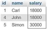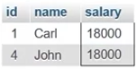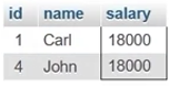 The output displays the records of two employees with ID 1 and 4 as in the table below.