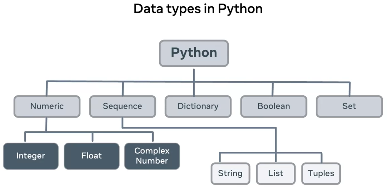 Python offers raw data types to allow data to be assigned to variables or constants. The five main types which are classed as literals consist of: