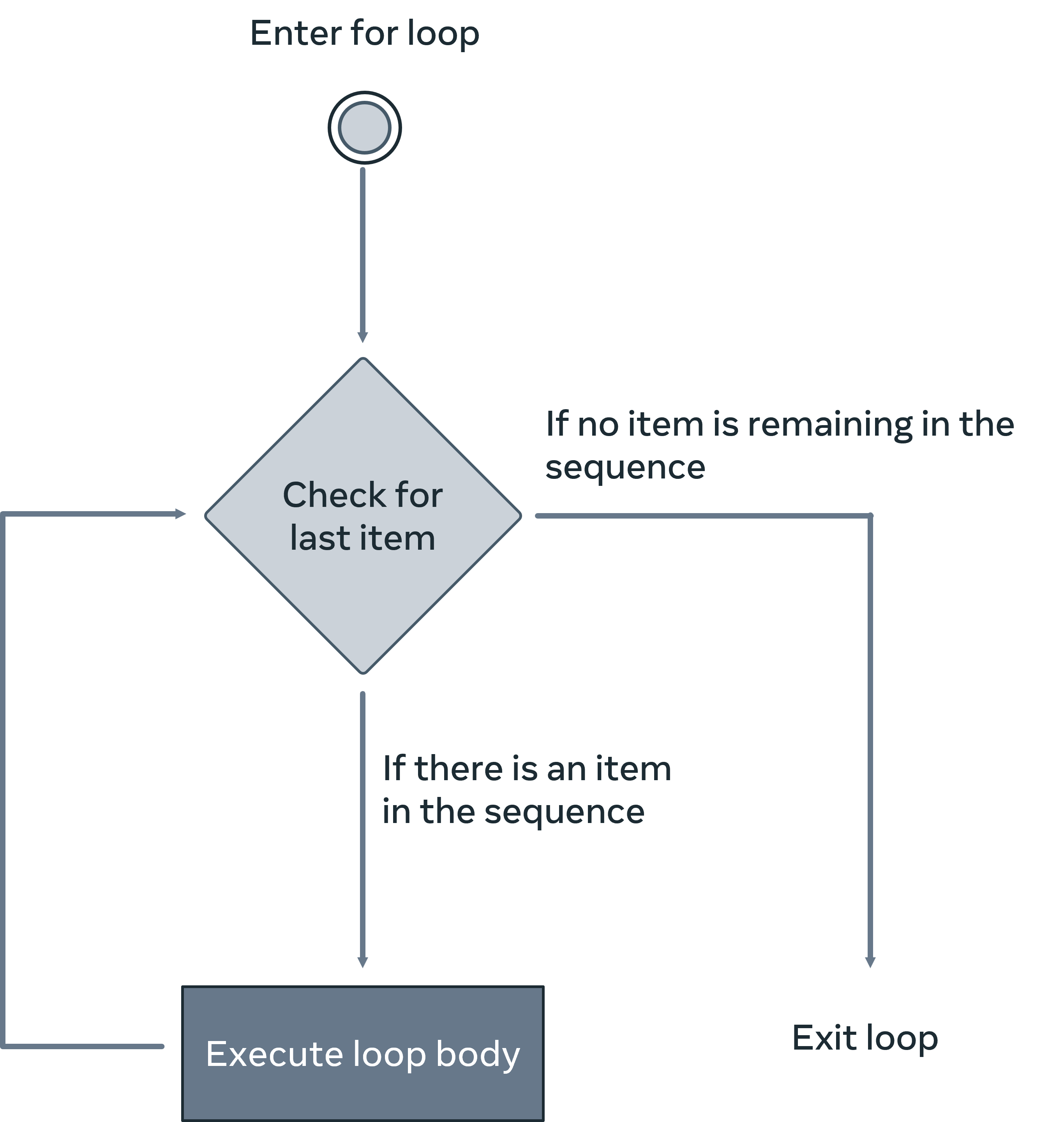 forloop and thewhileloop: Theforloop checks for specific conditions and then repeatedly executes a block of code as long as those conditions are met. Thewhileloop repeats a specific block of code an unknown number of times until a condition is met.