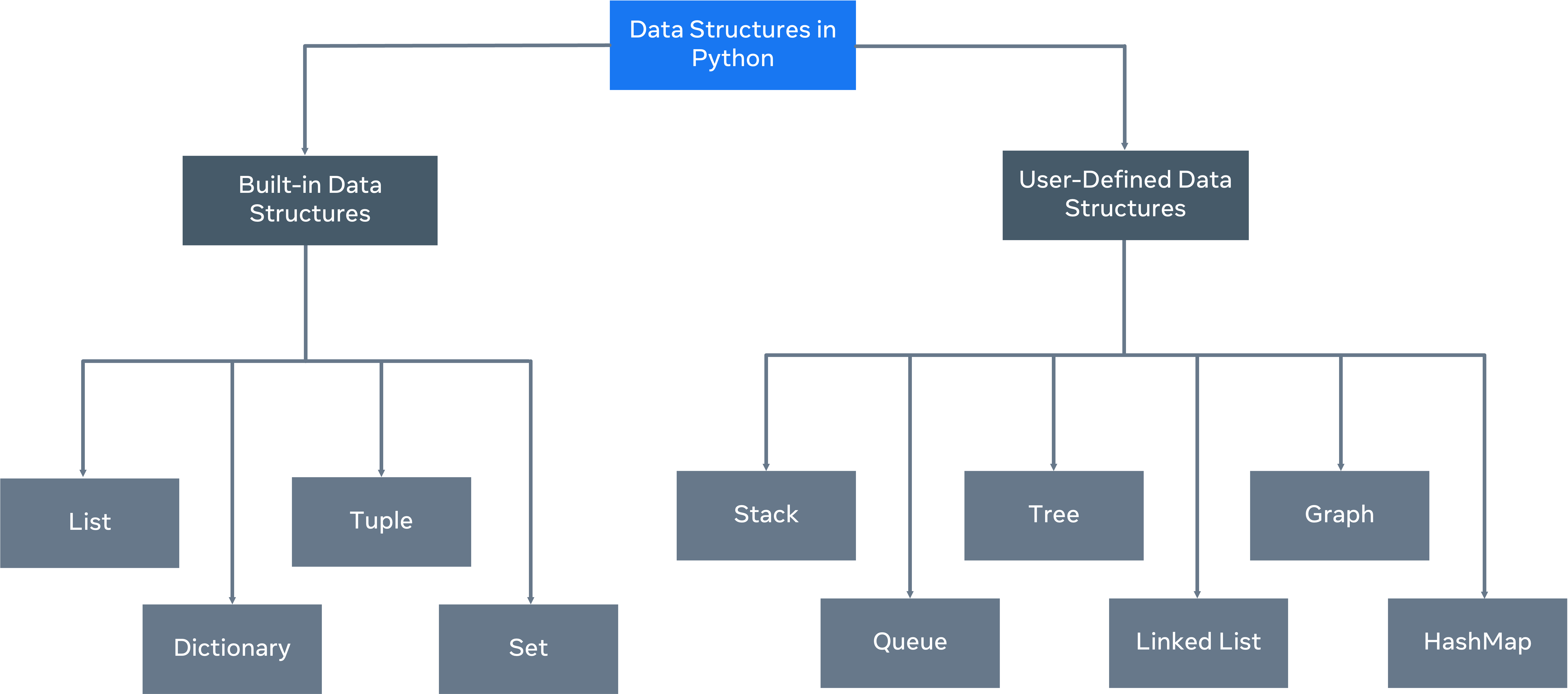 A data structure allows you to organize and arrange your data to perform operations on them. Python has the following built-in data structures: List, dictionary, tuple and set. These are all considered non-primitive data structures, meaning they are classed as objects, this will be explored later in the course.