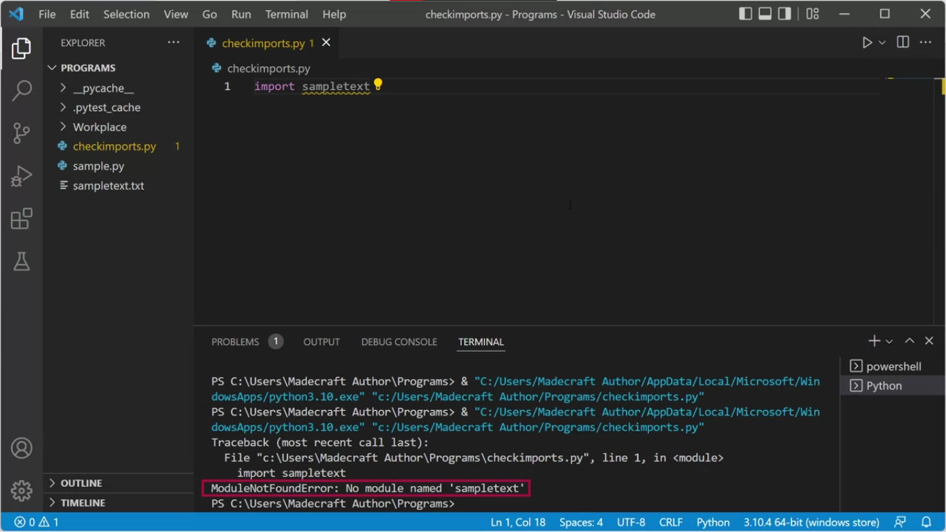 The code that you are working with is generally called the main module. In this case checkimports is the main module present in the current working directory. Also called the scope of the project.